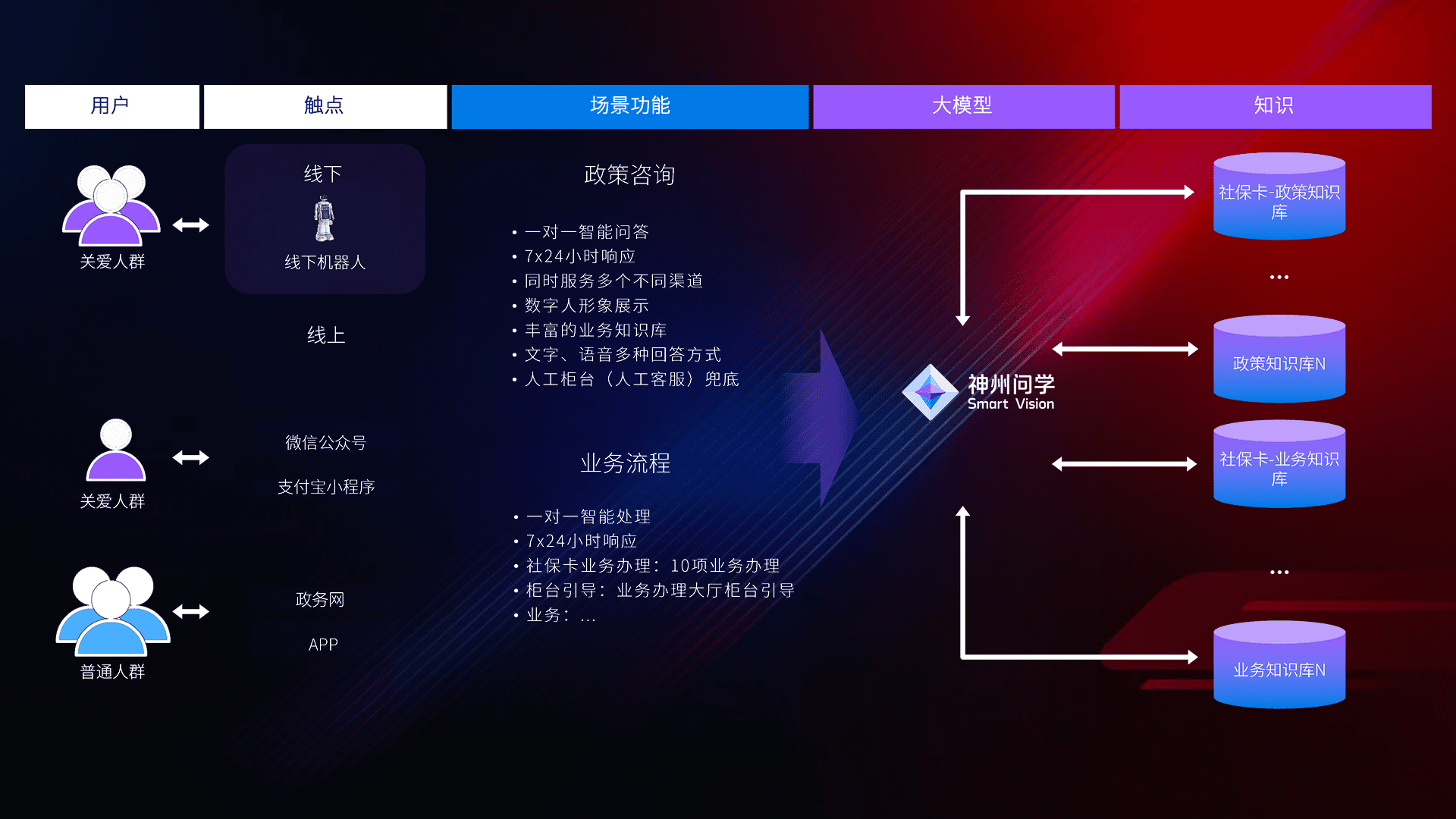 在服务大厅部署客服机器人,,在线上应用和小程序配置客服数字人,,,724小时为群众解答常规问题,,客服机器人无法处理的,,转现场人工处理。。。